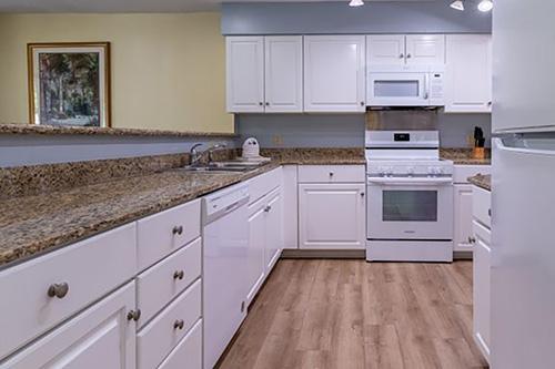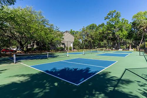 Spinnaker at Shipyard is situated along the sixth and seventh fairways of the Brigantine Golf Course amid Lowcountry lagoons. The two-bedroom, two-and-a-half-bathroom townhomes feature open floor plans with granite kitchen counters and decks overlooking golf and lagoon views. Amenities include a pool, poolside cabanas, splash pad, putting green, pavilion, lagoon-side barbecue grills, playground, and pickleball courts. The property is near the beach.